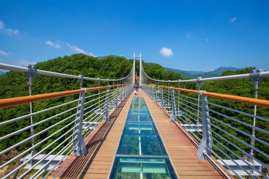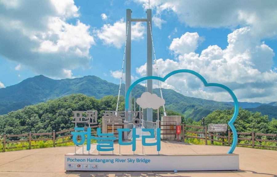 포천 한탄강 하늘다리는 포천 한탄강 협곡으로 단절된 생태경관단지와 테마파크 등을 연결하는 이색적인 형태의 보도교이다. 길이 200m에 성인(80㎏) 1,500명이 동시에 지나갈 수 있도록 설계되어 있고, 한탄강 협곡을 지상 50m 조망할 수 있다. 특히 강 아래에서 협곡 등 비경을 감상할 수 있는 최적의 코스로 조성되어 있어 남녀노소 부담 없이 걷기에 최적의 코스로 형성되어 있다. |