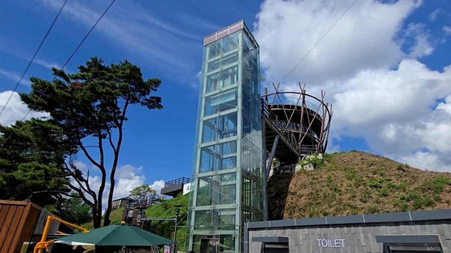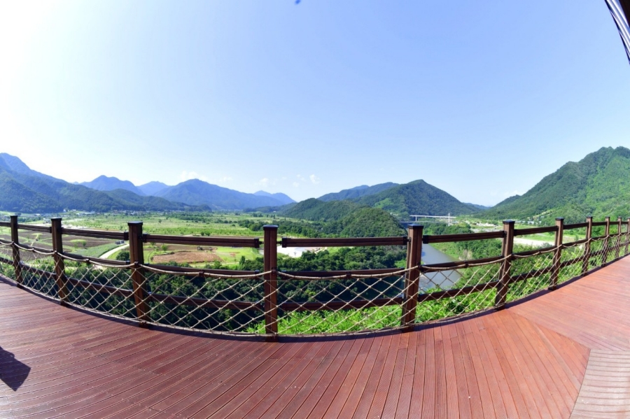 멀리 지장산과 생태경관단지 꽃정원과 한탄강 하늘다리 및 절벽 아래 흐르는 한탄강 뷰를 한눈에 볼 수 있다. |