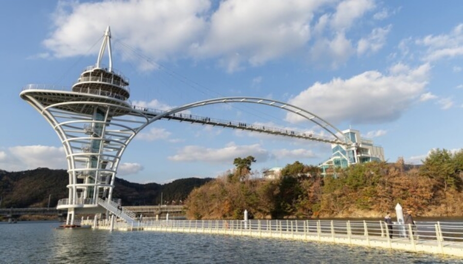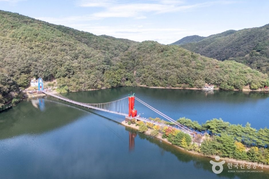 2009년에 만들어졌으며 총길이 207m로 다리 중간 부분에 청양의 특산물 구기자와 고추를 형상화한 높이 16m의 주탑이 시선을 끈다. |