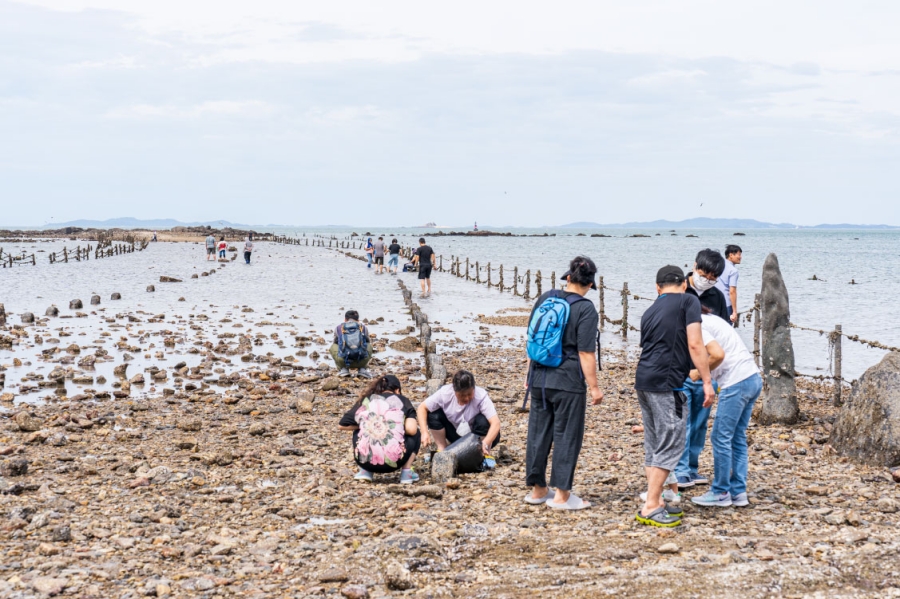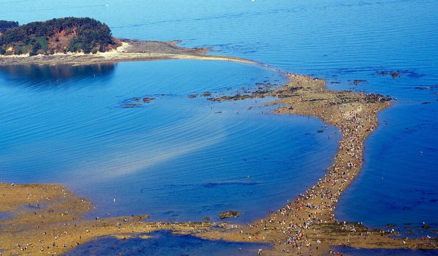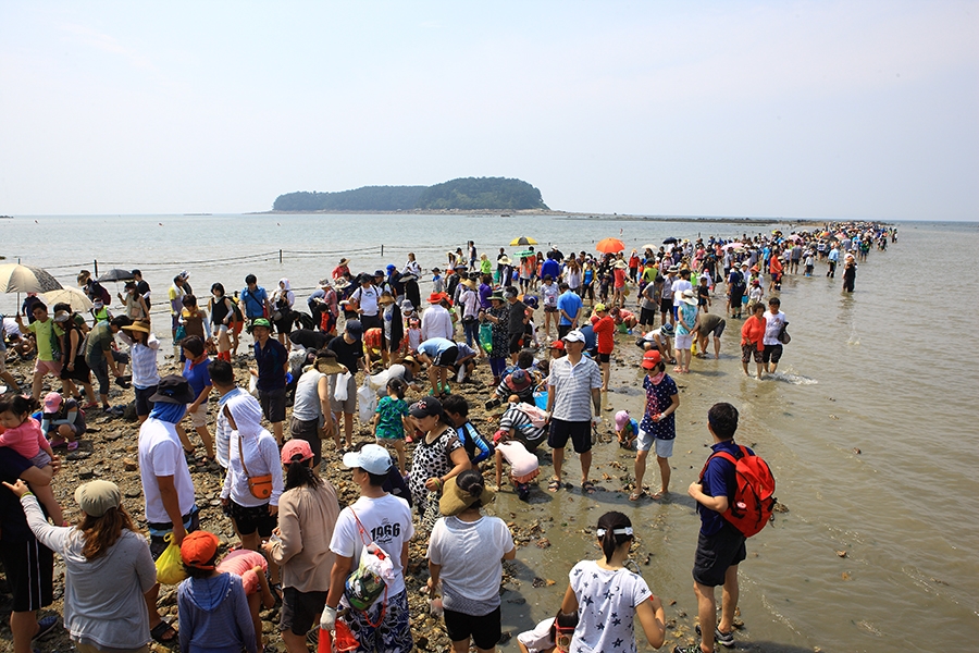 조석 간만의 차가 큰 매월 음력 보름날과 그믐날 전후에 해변에서부터 석대도까지 1.5km 길이 열리는 '신비의 바닷길'이 열린다. |