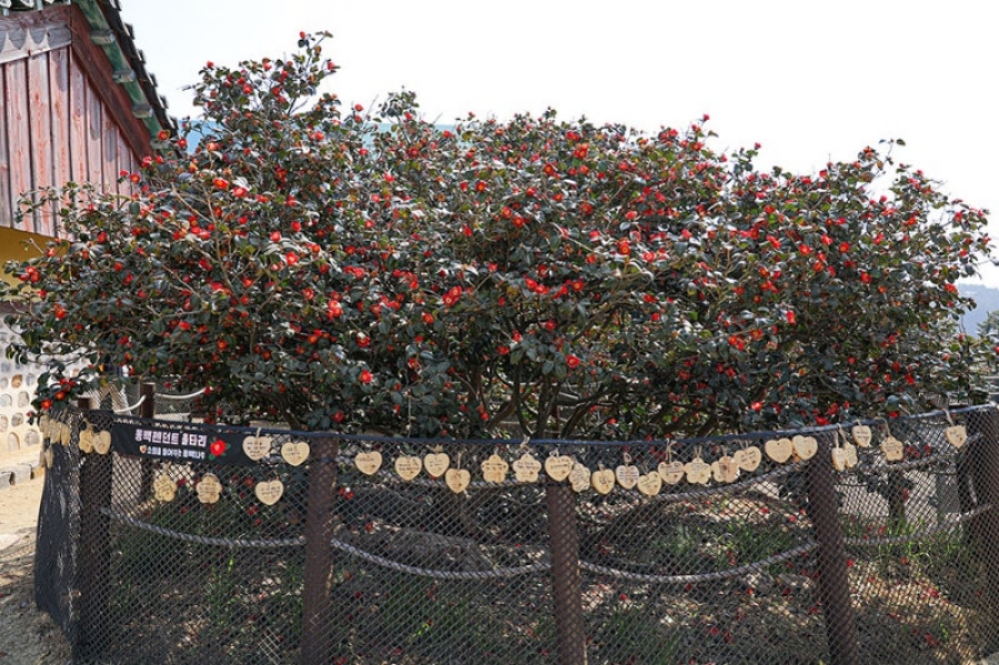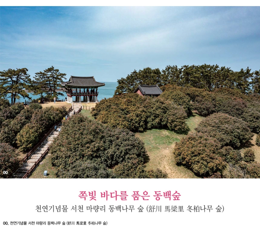 서천 팔경 중의 한 곳인 서면 마랑리 동백나무 숲은 천연기념물로 지정되어 있다. |