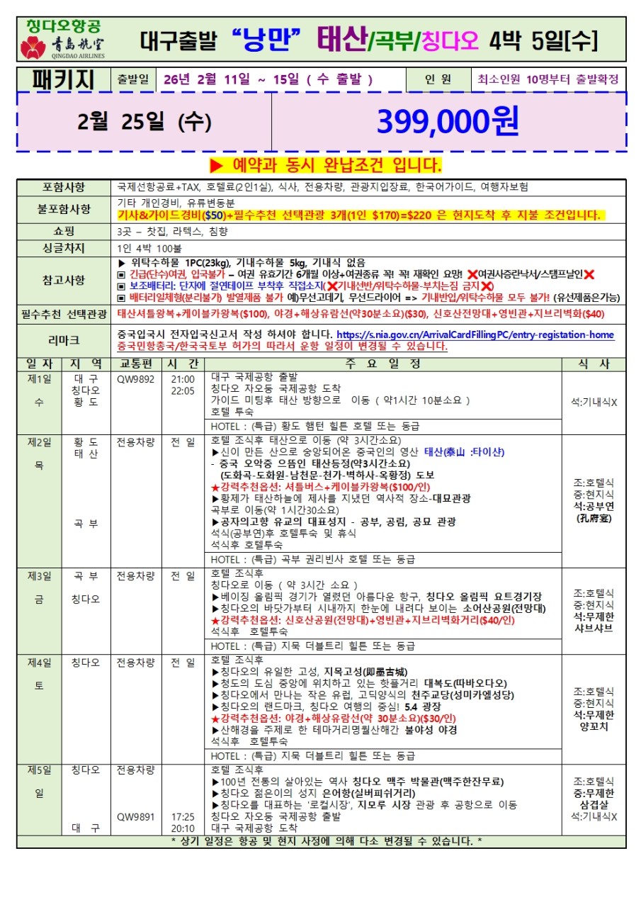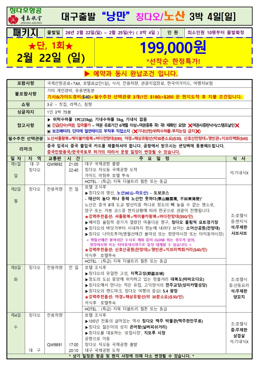 | ⭕포함사항: 일정표 참조 |