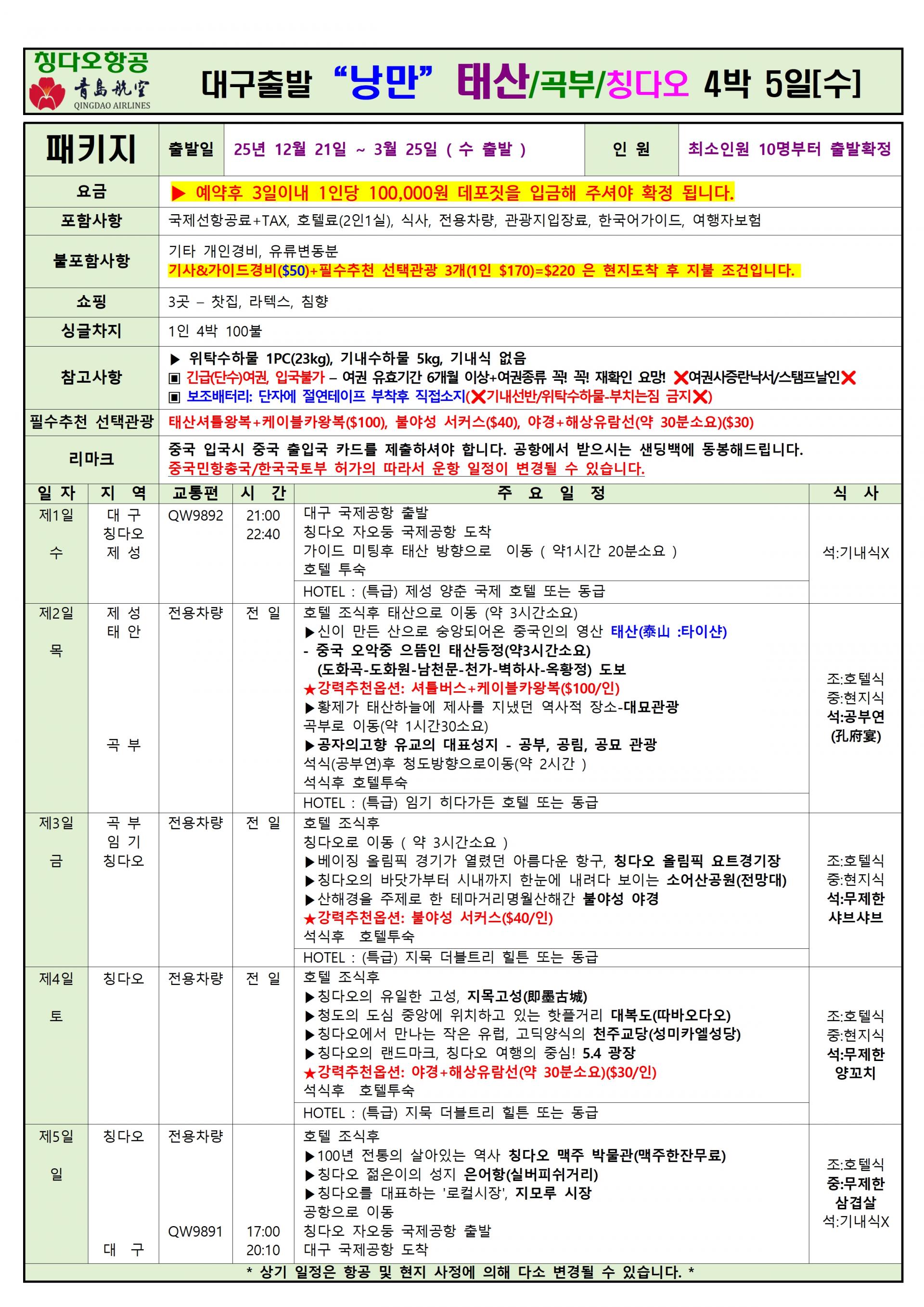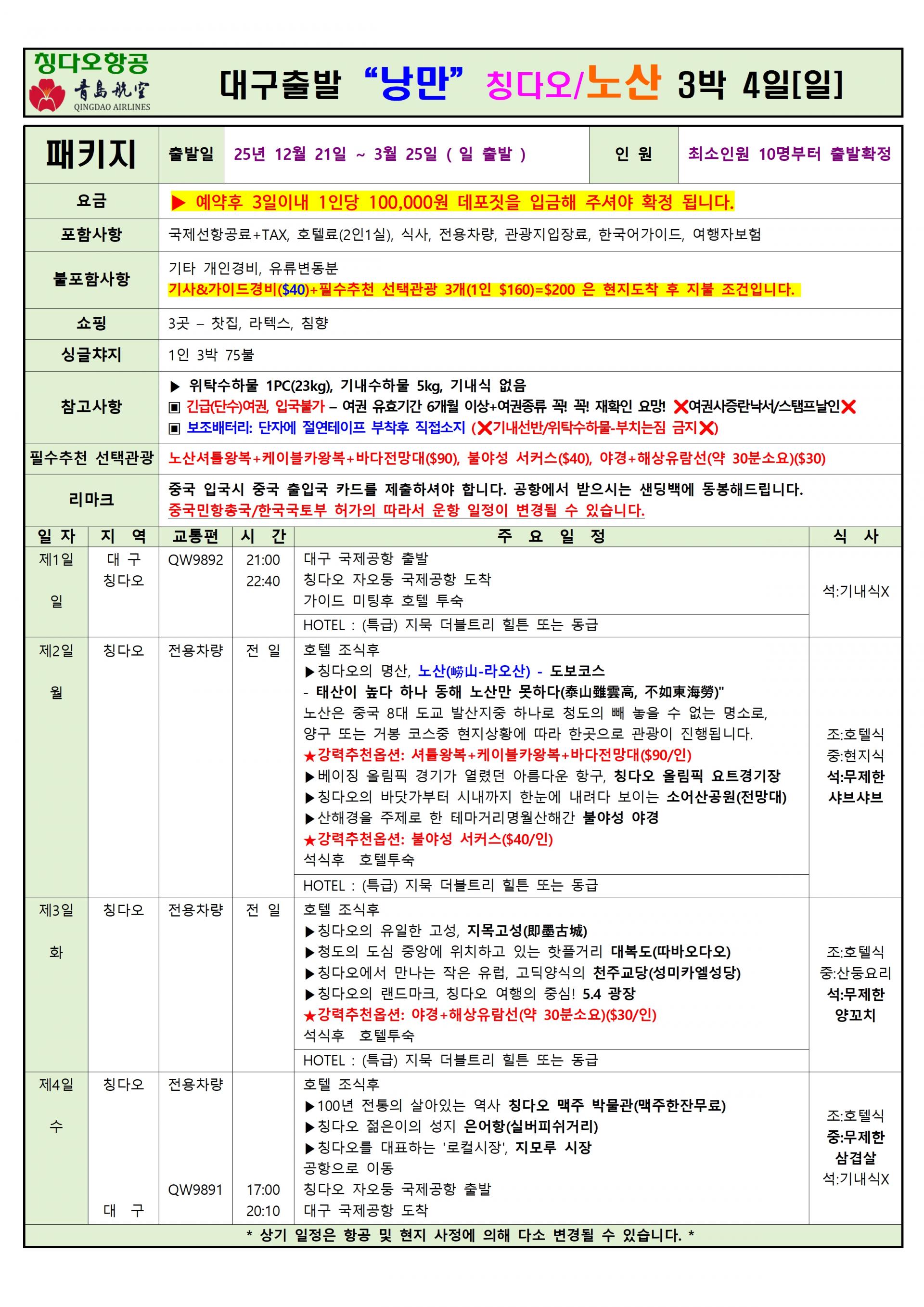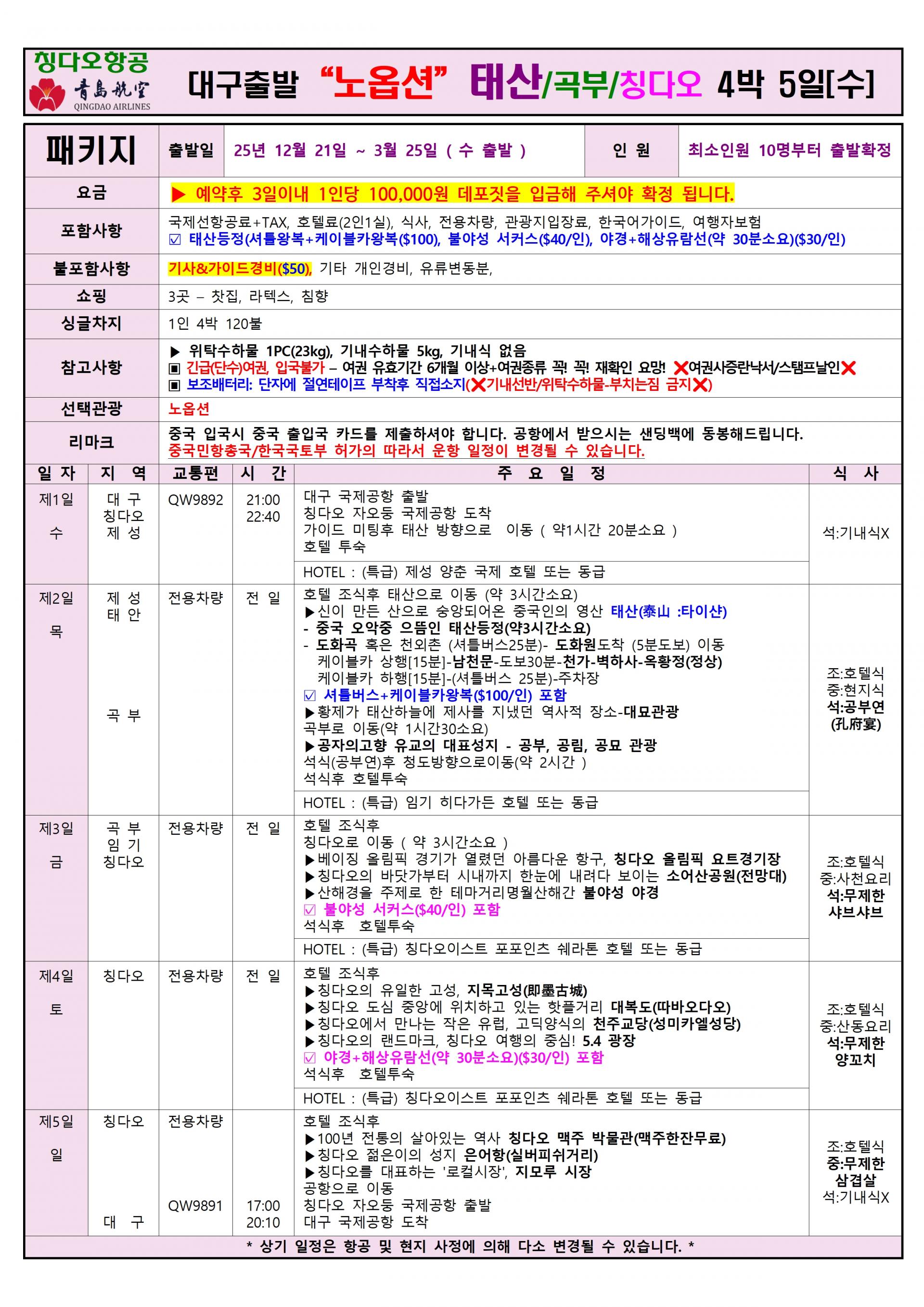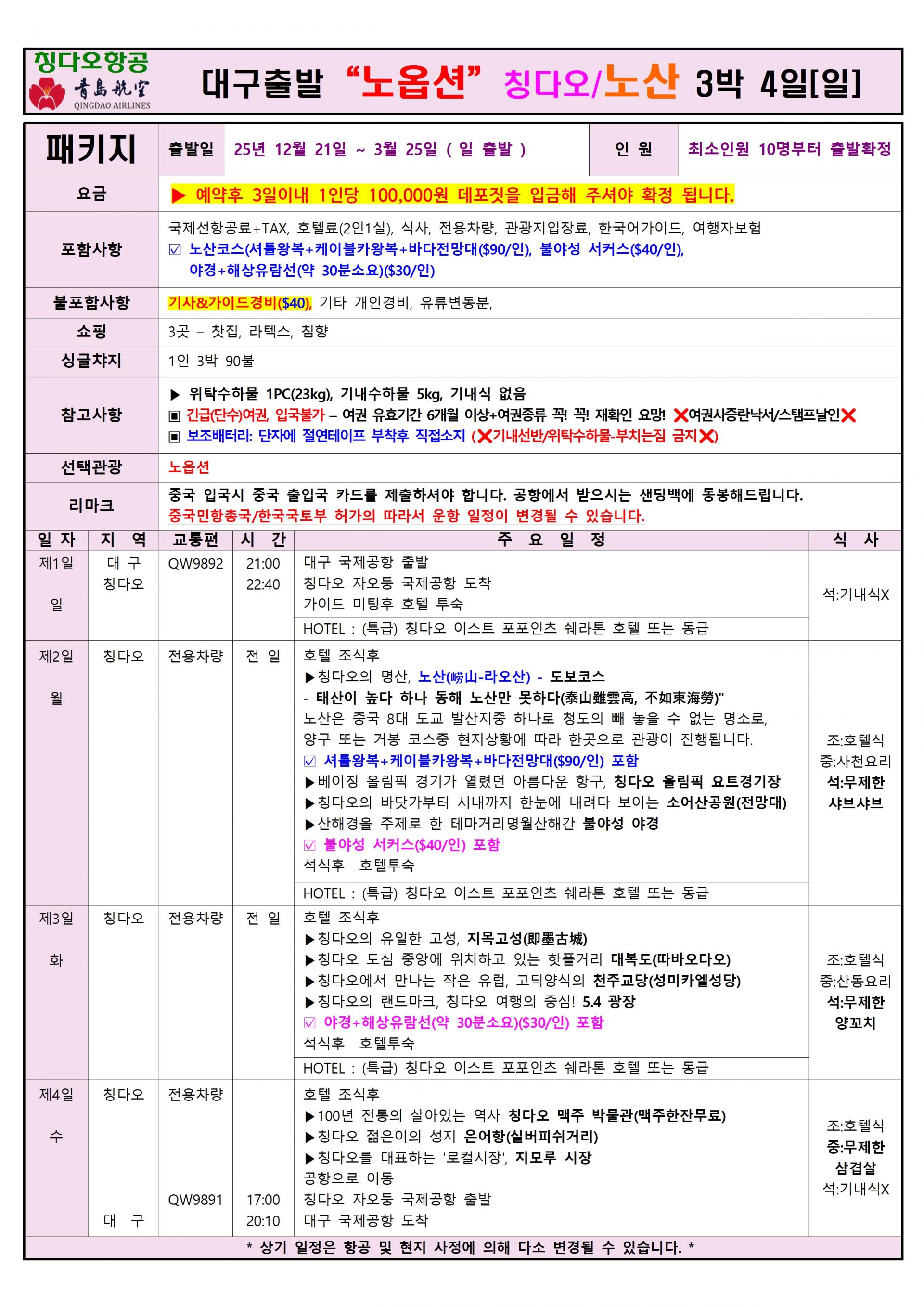 | ✔선택관광: 일정표 참조 |