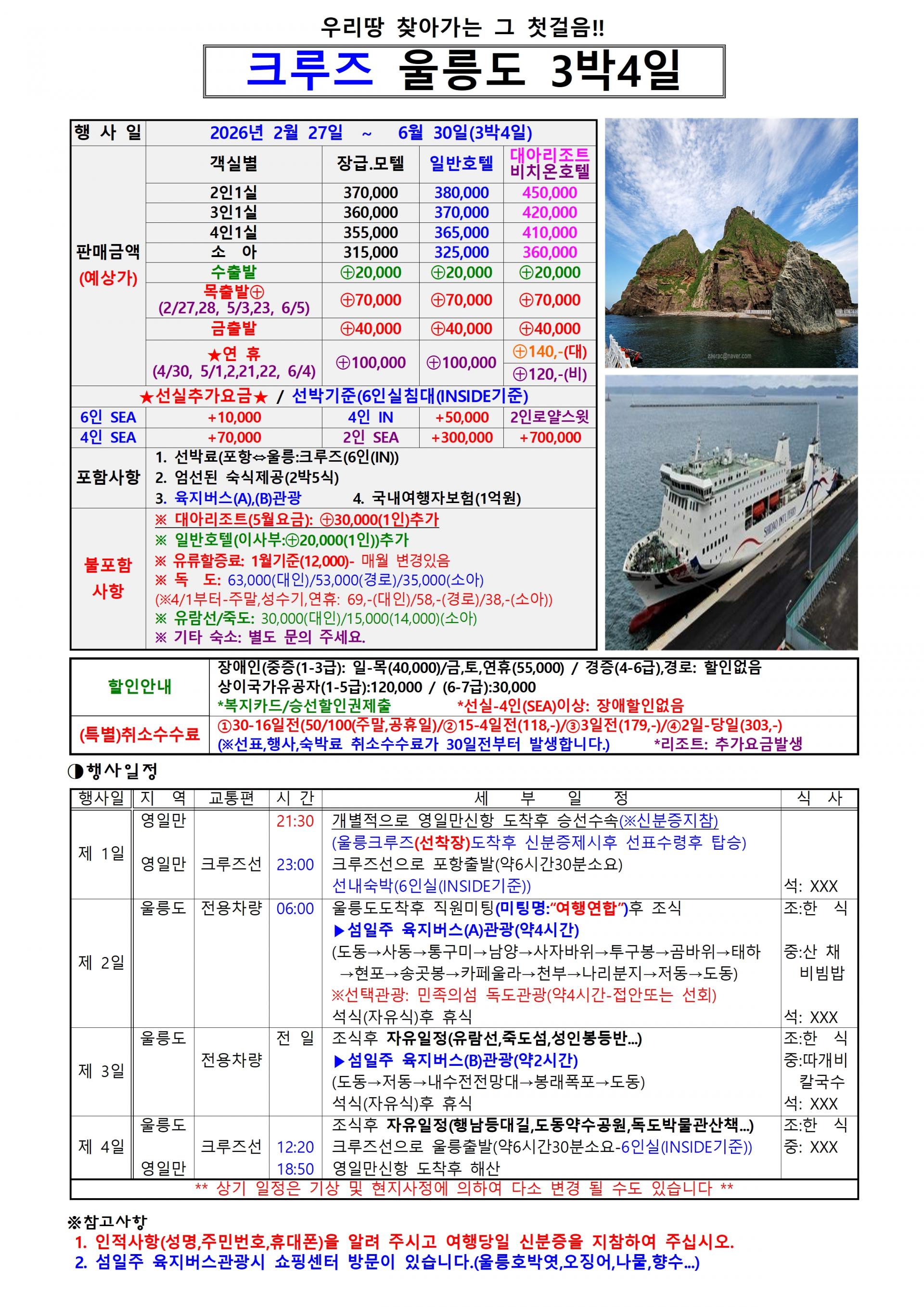| 📢참고사항 ☞ 배멀미 걱정 없는 울릉크루즈 |