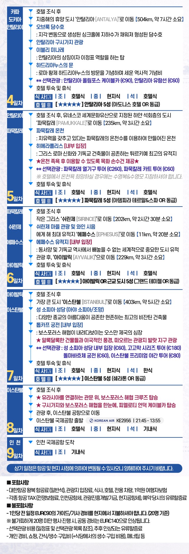 | ⭕포함사항: 일정표 참조 |
