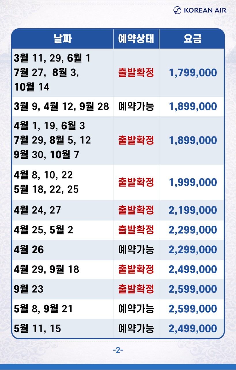 위 계약금은 호텔, 항공, 현지 사정 등에 의해 변경될 수 있으며, 상황에 따라 결제시한은 당겨질 수 있습니다.