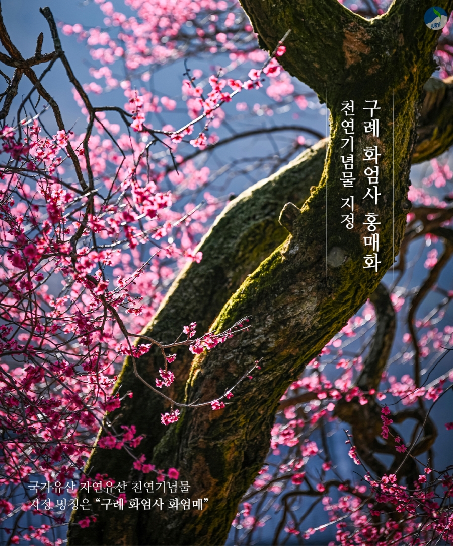 화엄사 홍매화의 천연기념물 지정 명칭은 “구례 화엄사 화엄매”다. |